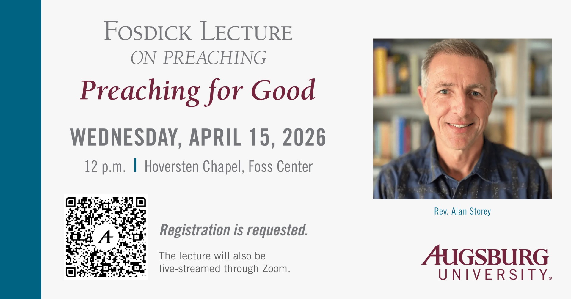 Augsburg UniversityThis year’s lecture will be delivered by Rev. Alan Storey, a renowned Gospel storyteller and facilitator of personal and political change from South Africa. A former conscientious objector during the apartheid regime, Rev. Storey has dedicated his life to the "experimental practice of the Sermon on the Mount," working extensively on issues of social justice, [...]